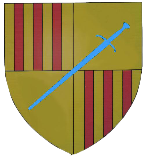 Au champ d'Or, écartelé au 1 et 4 par trois pals de gueule et au 2 et 3 d'une épée d'azure taillante et venant par l'abîme.